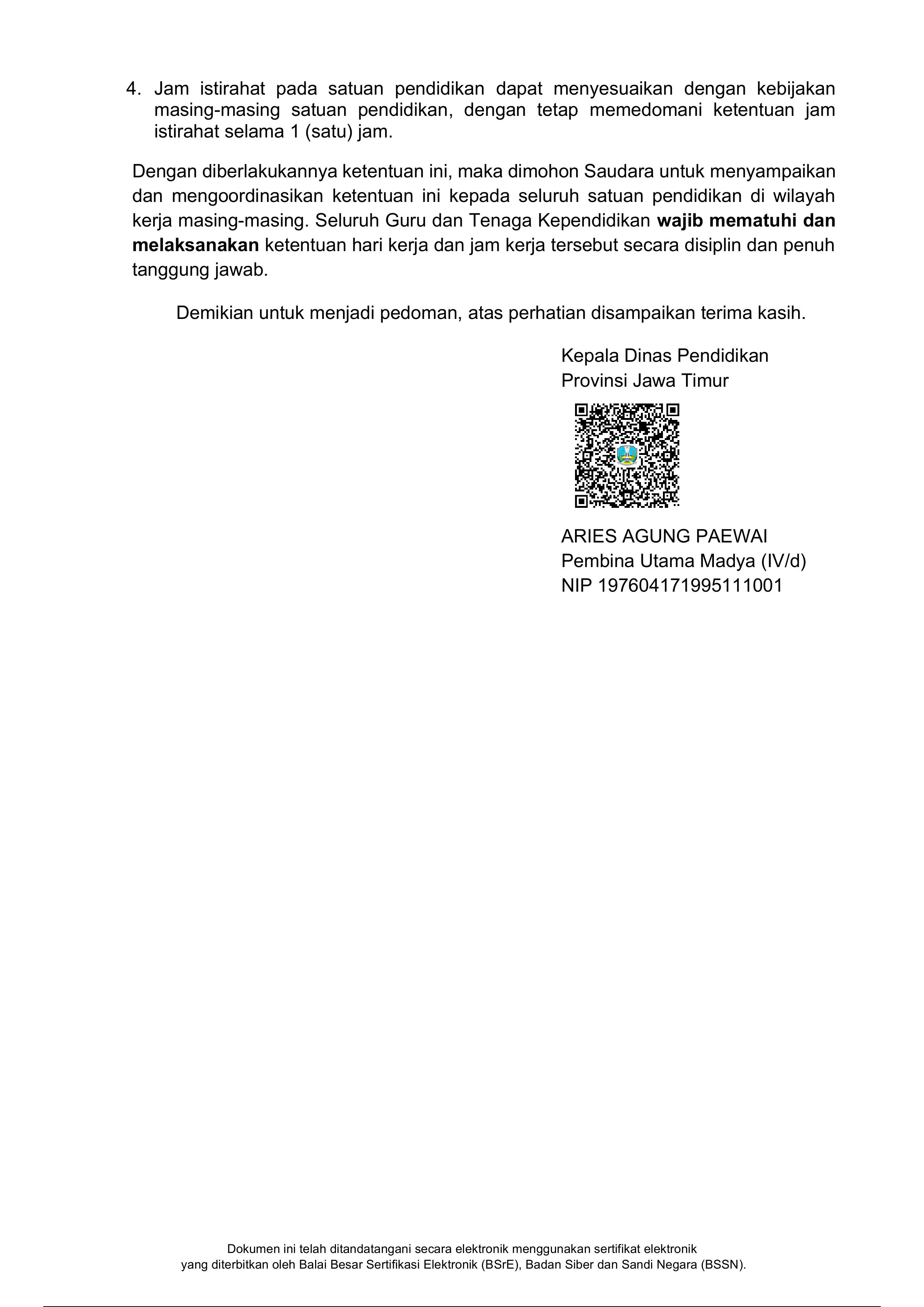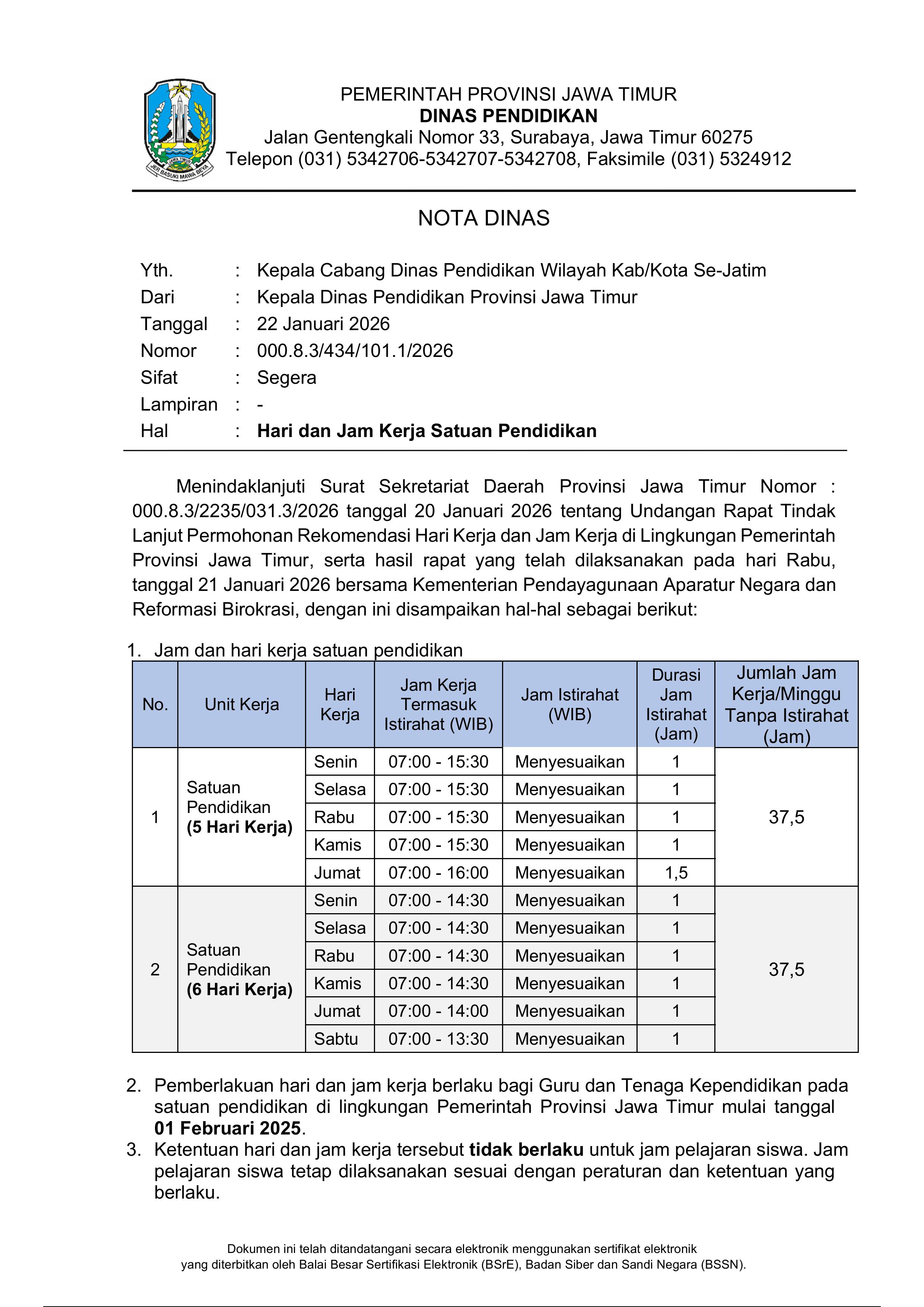 Nota Dinas Hari dan Jam Kerja Satuan Pendidikan